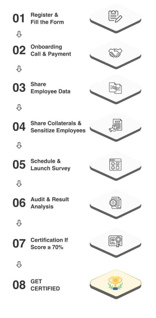Organizations must achieve a minimum overall score of 70%, based on employee survey results and audit interviews.