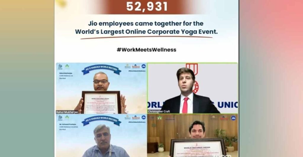 Jio Creates Global Benchmark in Workplace Wellbeing with 52,913- Participants in World’s Largest Online Corporate Yoga Event